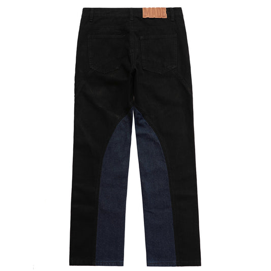 Men's Fashionable PU Leather Stitching Colorblock Jeans