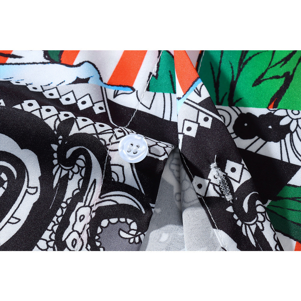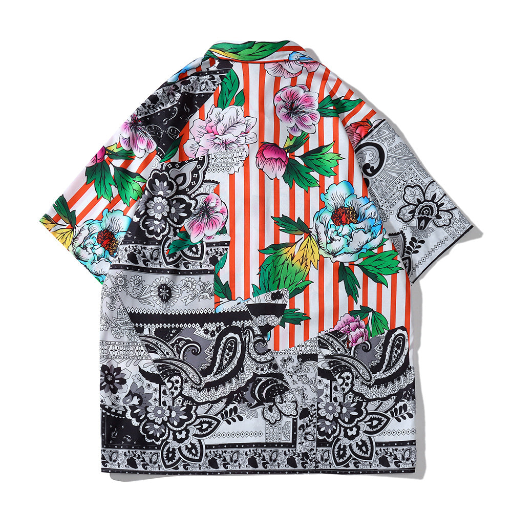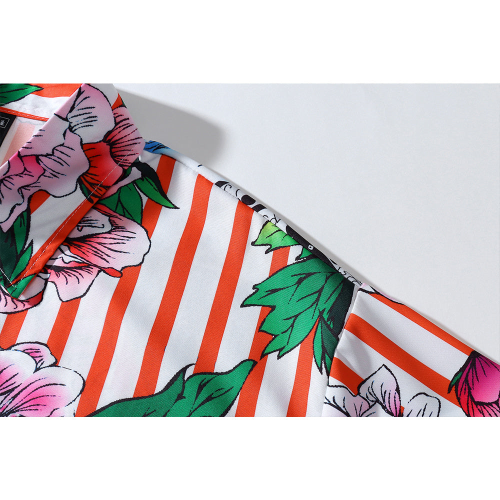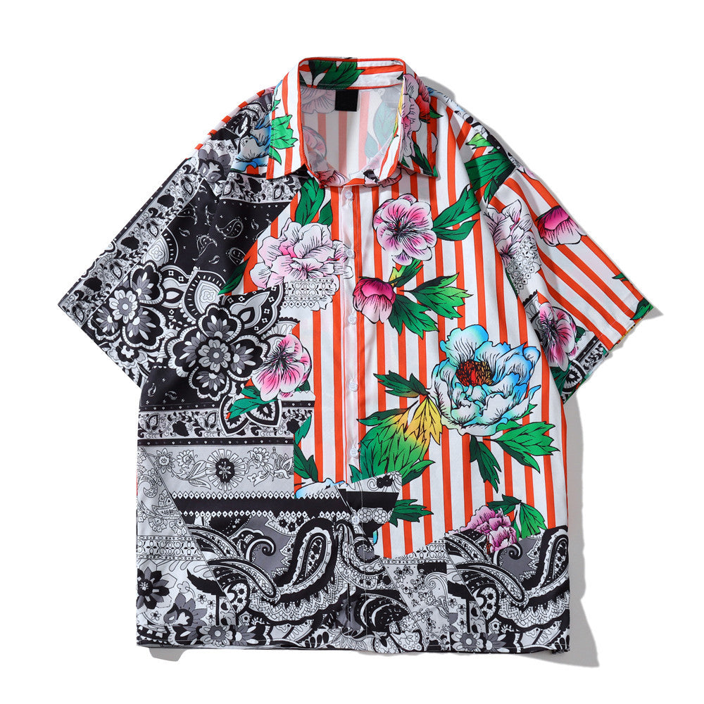 Big White Flower Full Print Shirt Beach Cardigan Short Sleeve Man