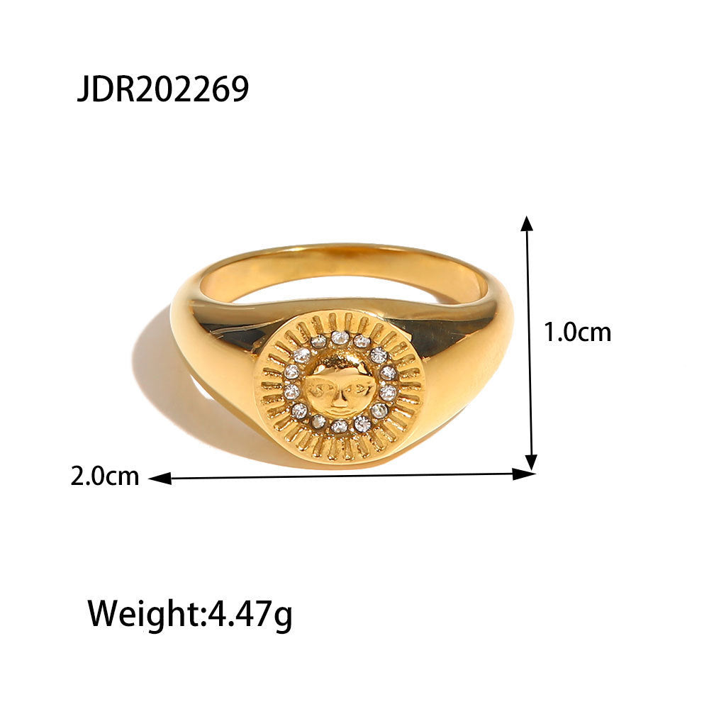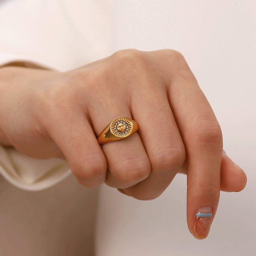 Diamond-inlaid Round Female Fashion High Sense Temperament Wild Retro Gold Forefinger Ring